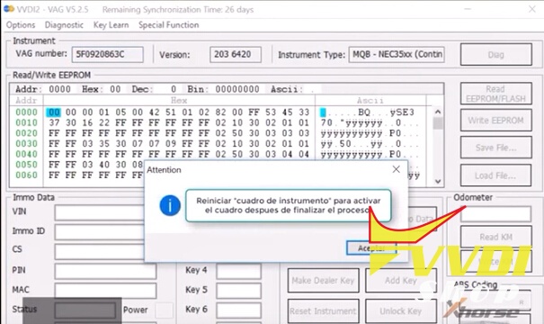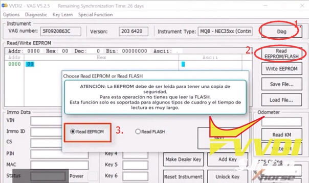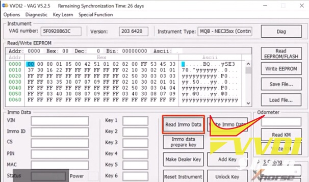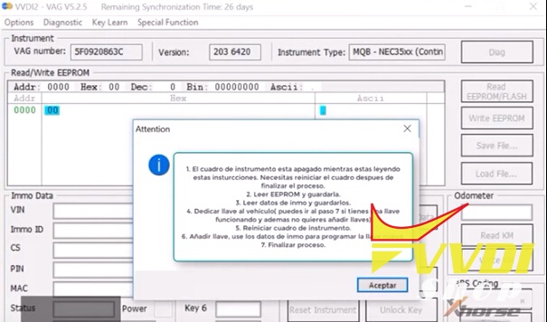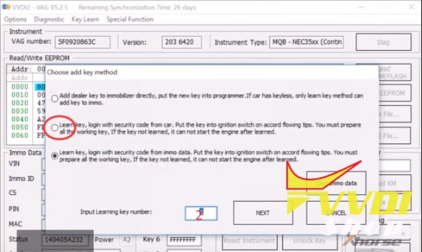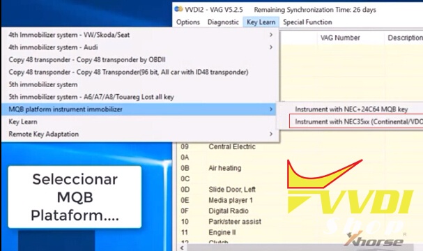 Select Key Learn->MQB platform instrument immobilizer->Instrument with NEC35xx (Continental/VDO)