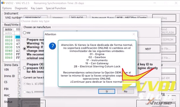 Attention: If you have the dedicated key in a normal way it will not support coding ONLINE or changes in the immobilizer of the following units: