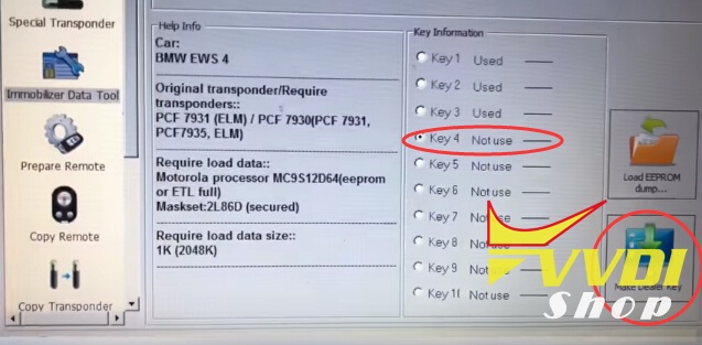 Insert original remote into Keytool left coil to read key data