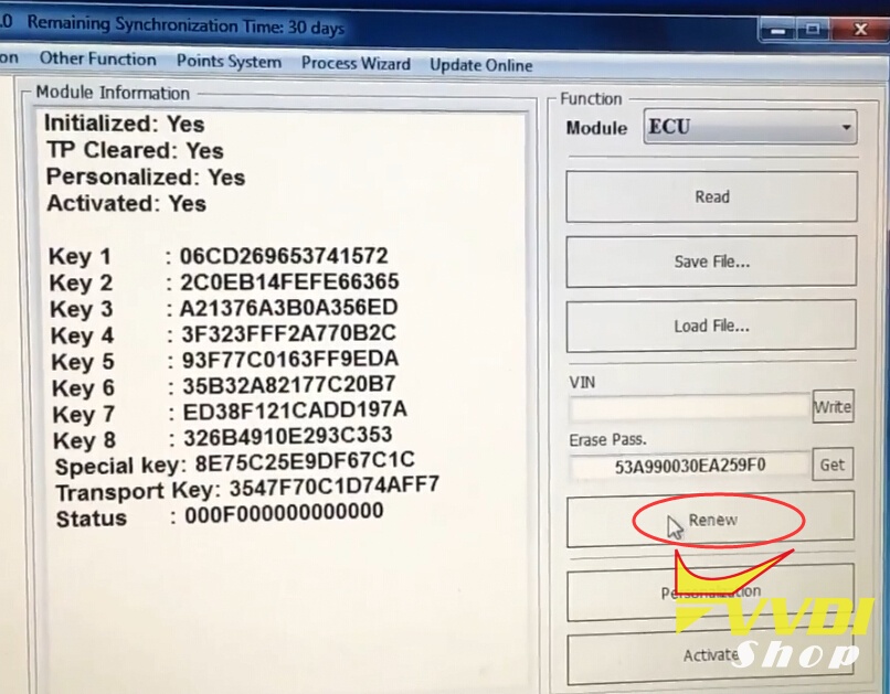 Put VVDI Key Tool antenna close to ignition switch or coil detention area