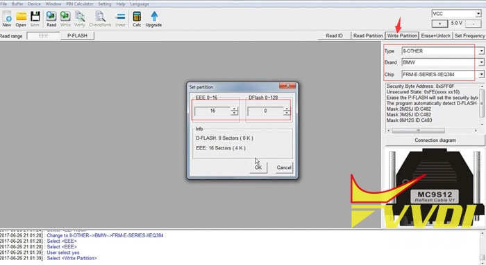 VVDI Prog adds FRM-E-SERIES-XEQ384 and FRM-F-SERIES-XET512 read & write options since version 4.6.8 (check pinout connection to VVDI Prog in the end of the post).