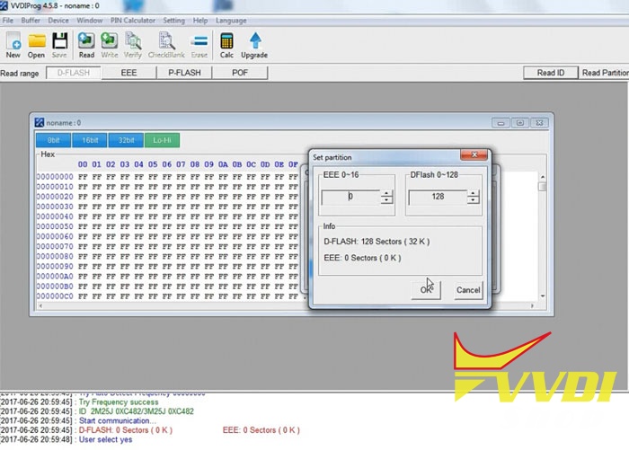 Select the partition size EEE:0 sector, DFlash: 128 sectors (32K), press OK