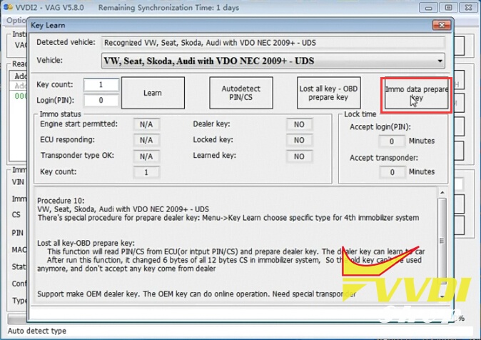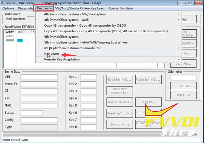 Open VVDI2 software, select Key Learn->5th Immobilizer System (Supports Audi A4L/Q5/A5/A6L(2012-)/A7/A8(2011-)/VW Touareg(2011-)