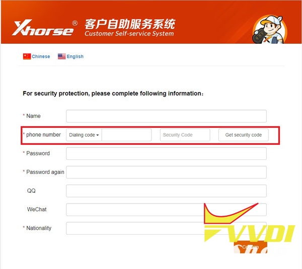 Xhorse put offline the registry with email, now you need to make your registry with your phone number: