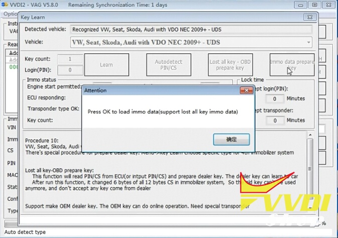 You can prepare new dealer key and learn key with this immo data in other OBD device.