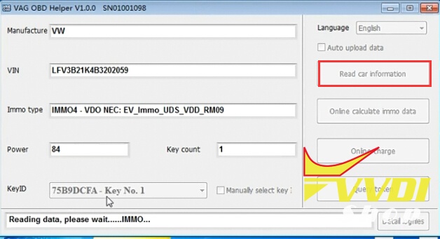 Step 1: Connect VVDI2 to car by OBD, start read BCM data