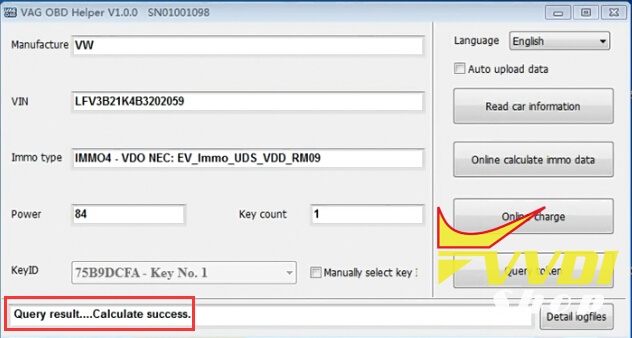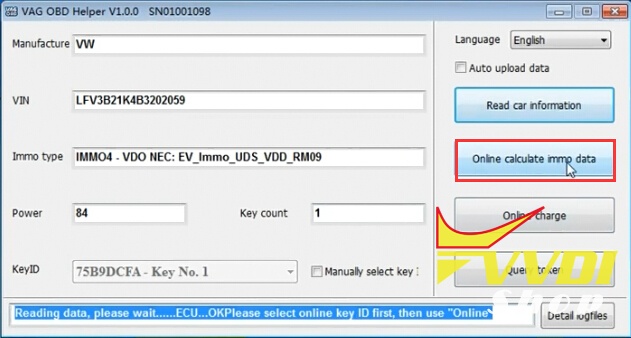 Step 4: Immo data calculated successfully Save the immo data calculated. The data can be uploaded to other OBD programmers