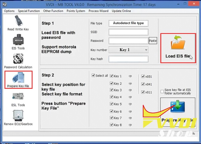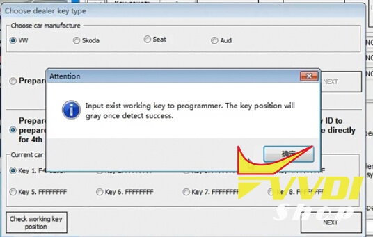Step 3: Press “Prepare Dealer Key”, it requests load the BCM2 data read in step 1. Then out the programmable key into programmer. Prepare the dealer key with tips.