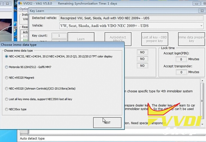 Here we use VVDI2 vag programmer select VVDI_NEC24C64_IMMO data