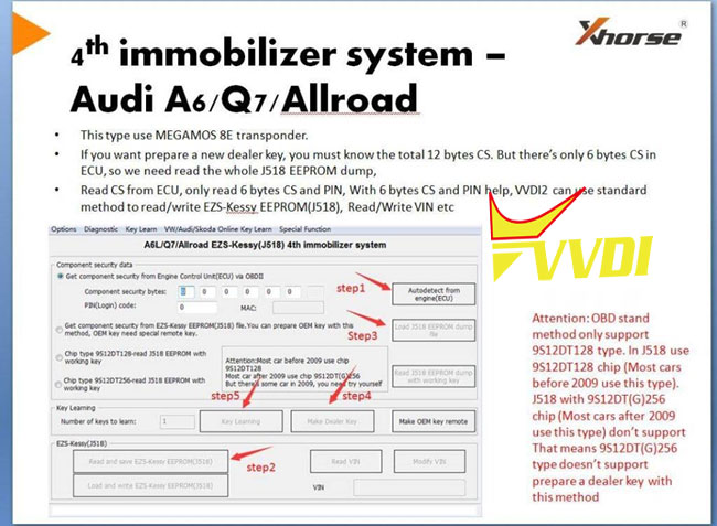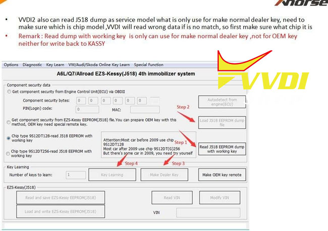 VVDI2 can use OBD standard method to read/write EZS-Kessy EEPROM (J518), read/write VIN etc