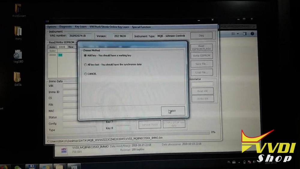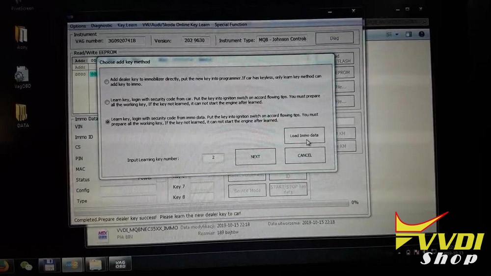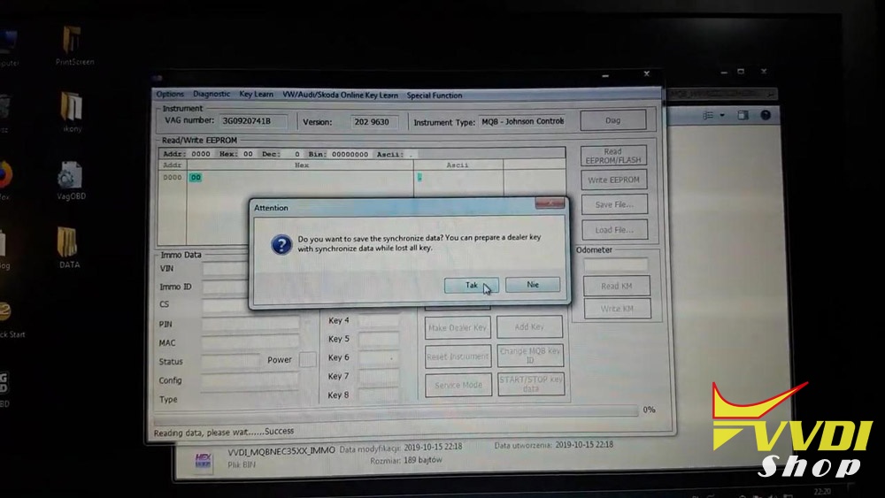 Use bitting, and write into new style HU64-3: Result Success