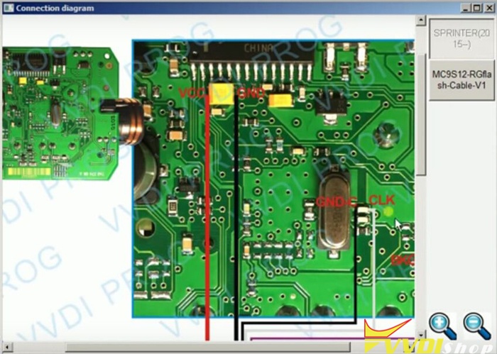Step1. Open VVDI PROG software. Choose “Type: 4-immobilizer”, “Brand: Benz” and “Chip: EIZ Sprinter (2015-)” then click on “Connection diagram”.