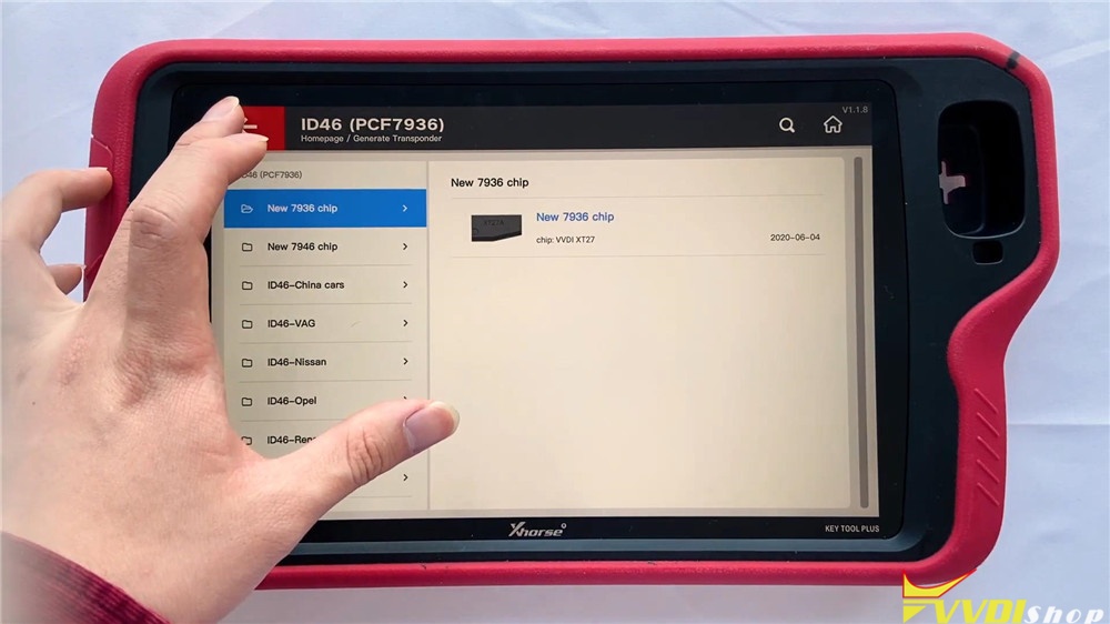 Here you can search by transponder or car model, the chip list shows the types you can generate. Now go into ID46(PCF7936) chip, we can see here are several specific chips for selection.
