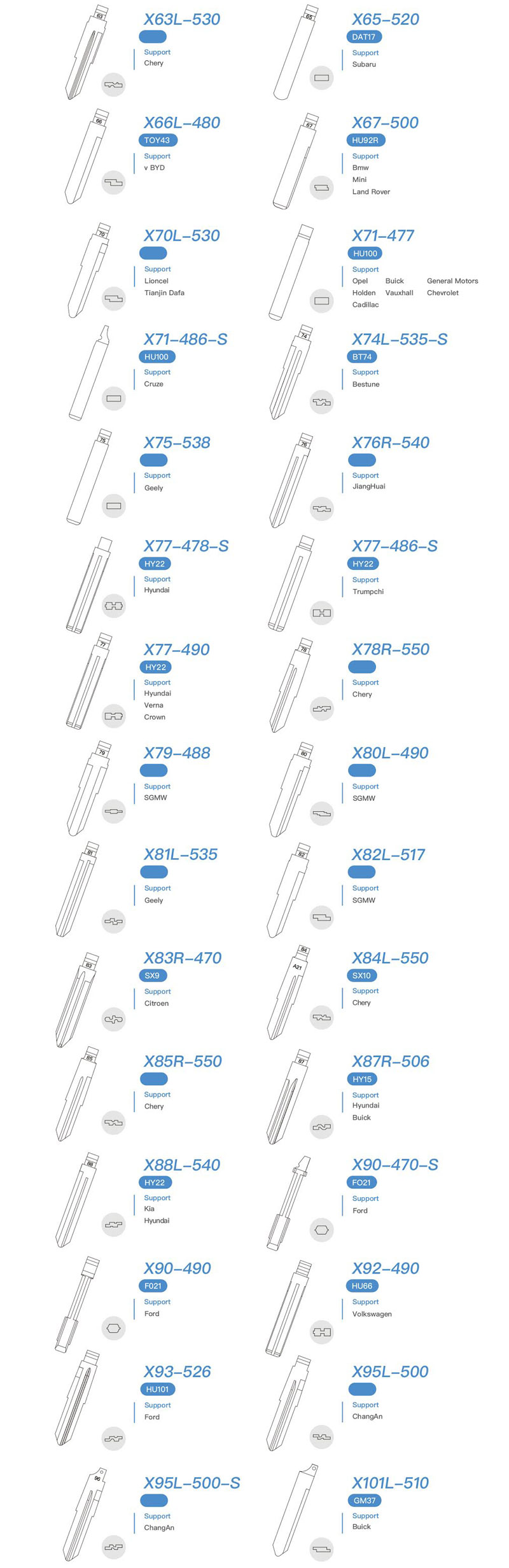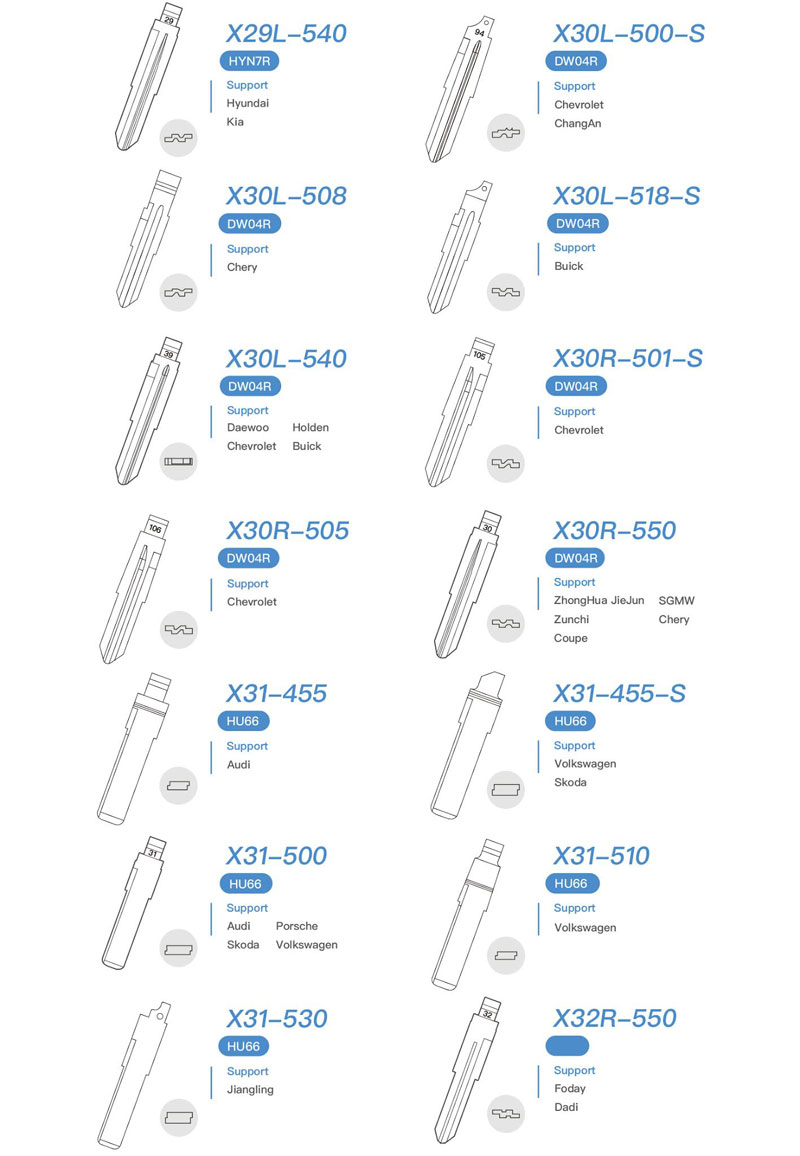 Xhorse Tech released a full range of valuable universal key blanks to better serve locksmith friends in 2020. These metal key blanks are used for automotive and motorcycle applications.