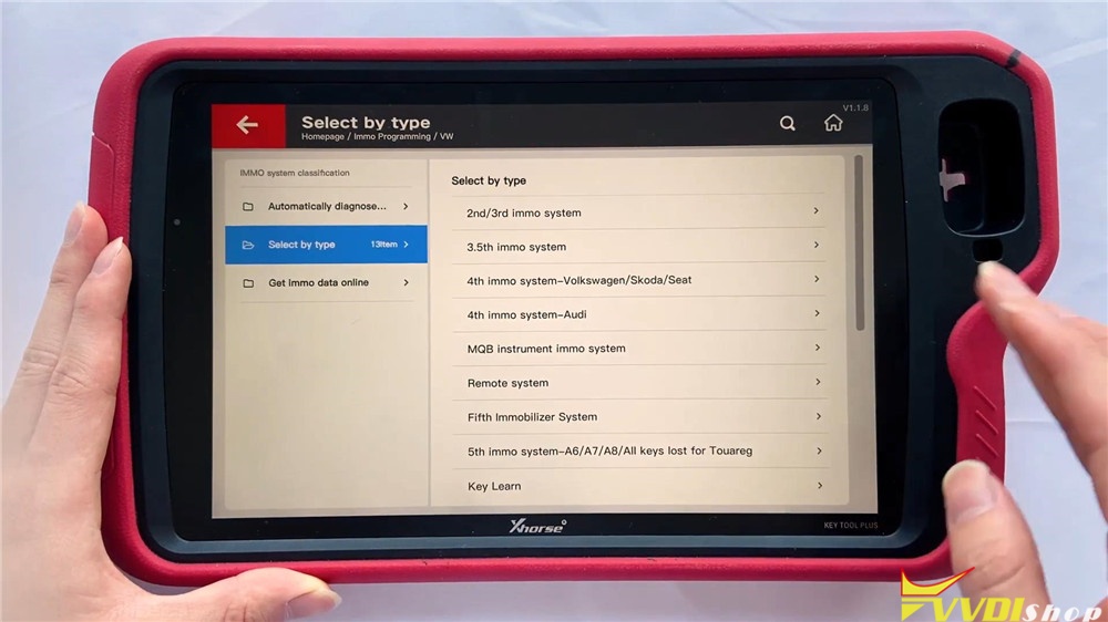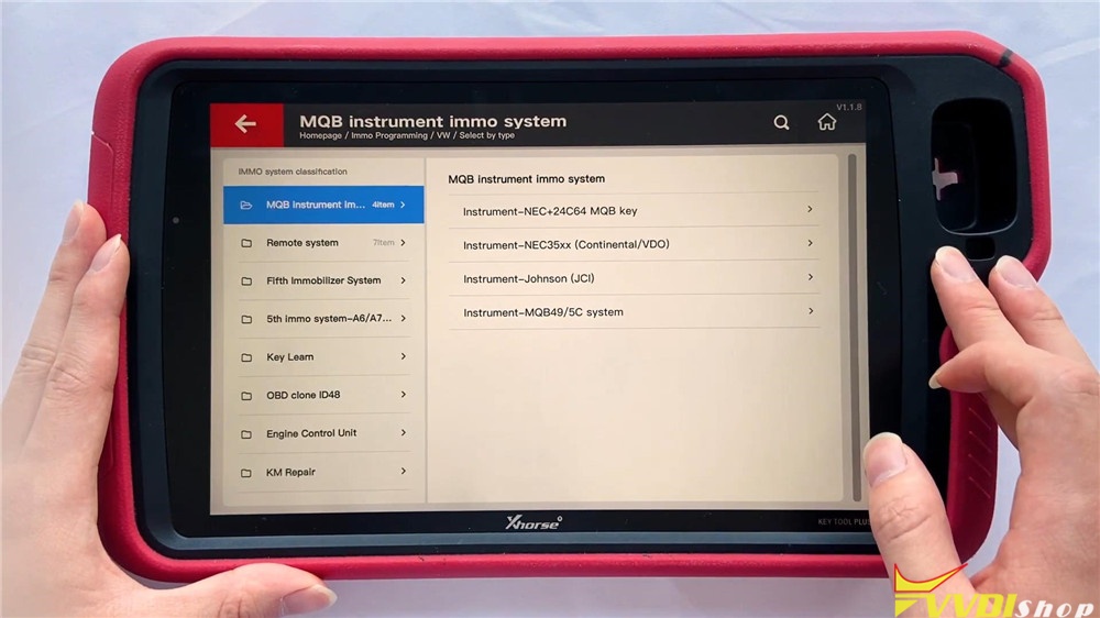 Select by type >> MQB instrument immo system