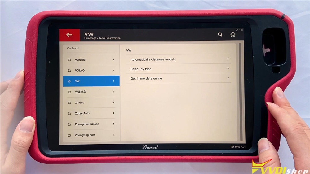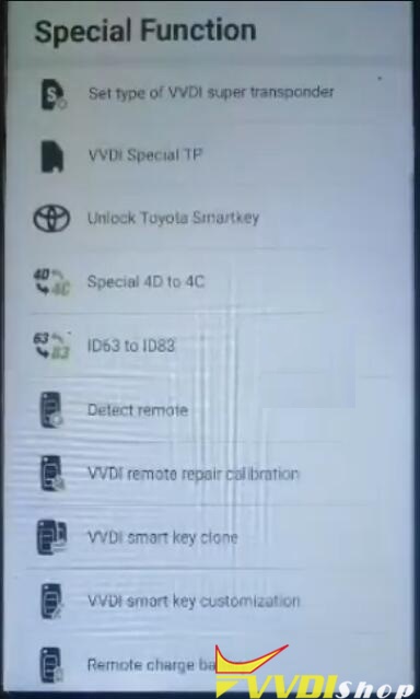 As we can see, there are 8 functions on VVDI Key Tool Plus Pad homepage: immo programming, transponder clone, generate transponder, remote program, OBD diagnostic, prog, cutting key and update.
