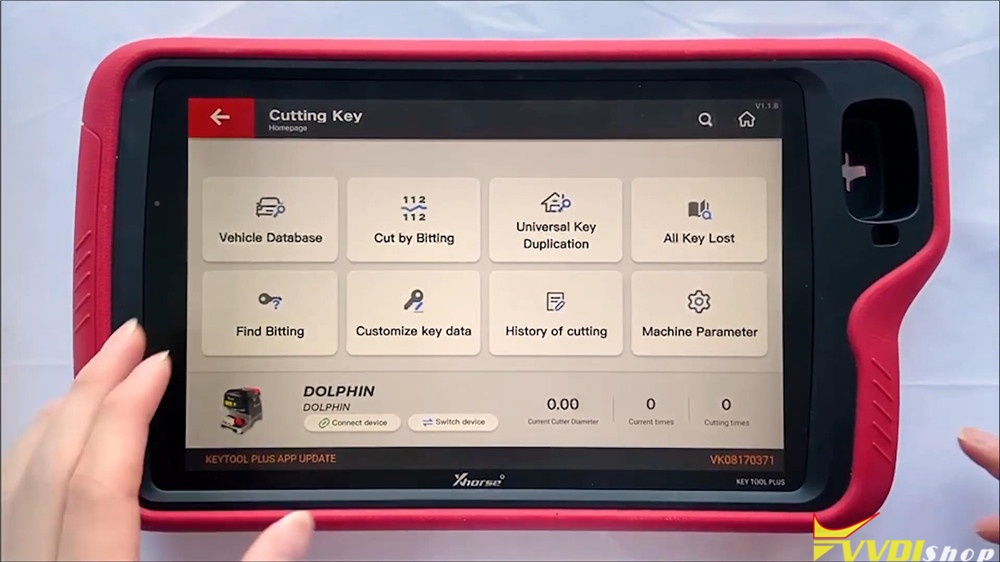 This function can connect with Dolphin XP005 Key Cutting Machine to control it. In the function including vehicle database, cut by bitting, universal key duplication, all key lost, find bitting , customize key data, history of cutting and machine parameter.