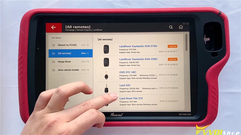 This function supports general remote for lots of car models we can check here. They are classified by areas and brands. let’s go into Land Rover: