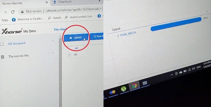 Go back to Xhorse cloud server to upload VW IMMO data. We can see its progress on the web.