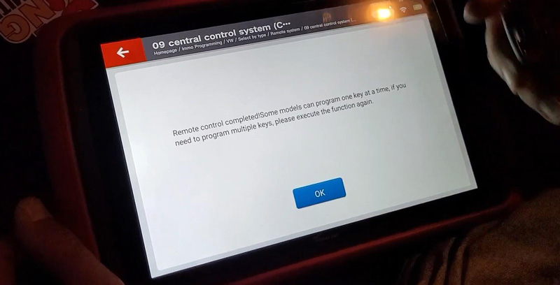Remote control completed! Some models can program one key at a time, if you need to program multiple keys, please execute the function again. Press “OK”.