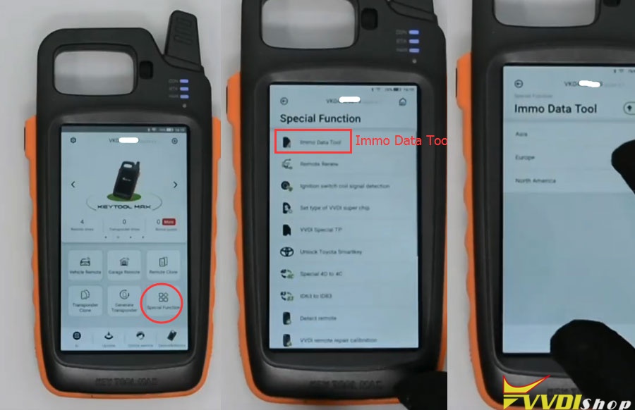 Then go to Key tool max, select Special Function->Immo Data Tool->Select region->Car brand and model, i.e European BMW EWS4