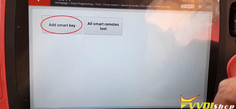 IMMO programming >> Ford >> China market >> Select by model >> Eco sport >> Smart key system >> -2017 >> Start programming >> Add smart key