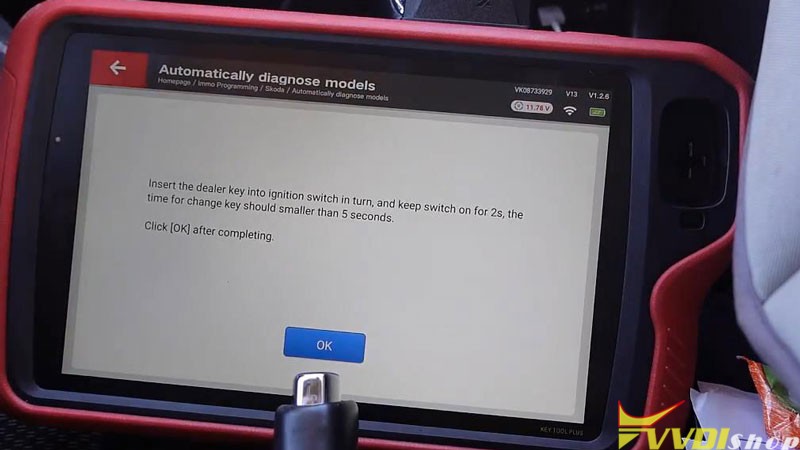 Skoda >> Prepare normal dealer key >> OK >> Yes >> Add key – you should have a working key