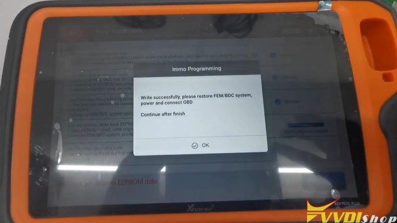 Please restore FEM/BDC system, provide +12v and connect OBD, press “Yes”.