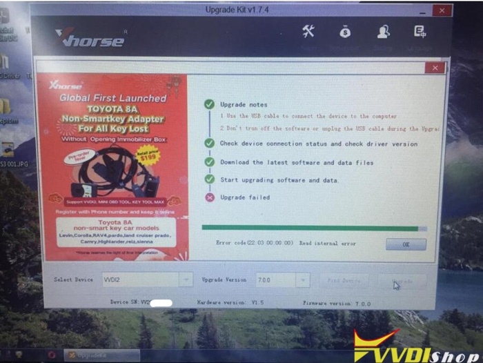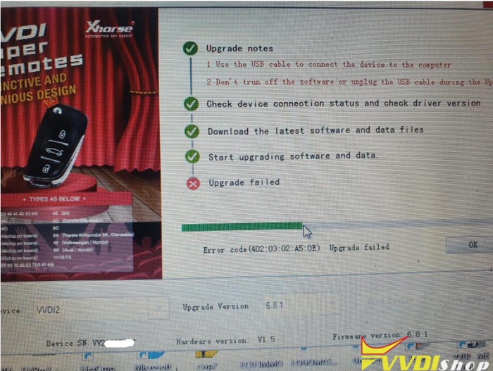 Here is the working solution to Xhorse VVDI2 key programmer various update error codes via Upgrade Kit.