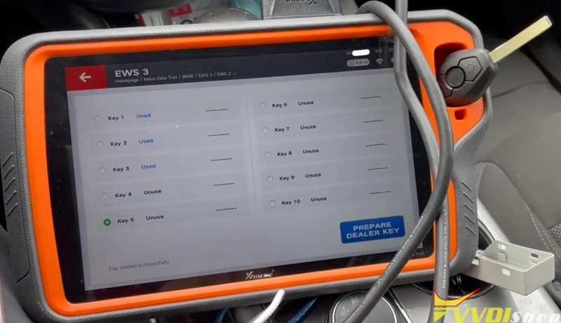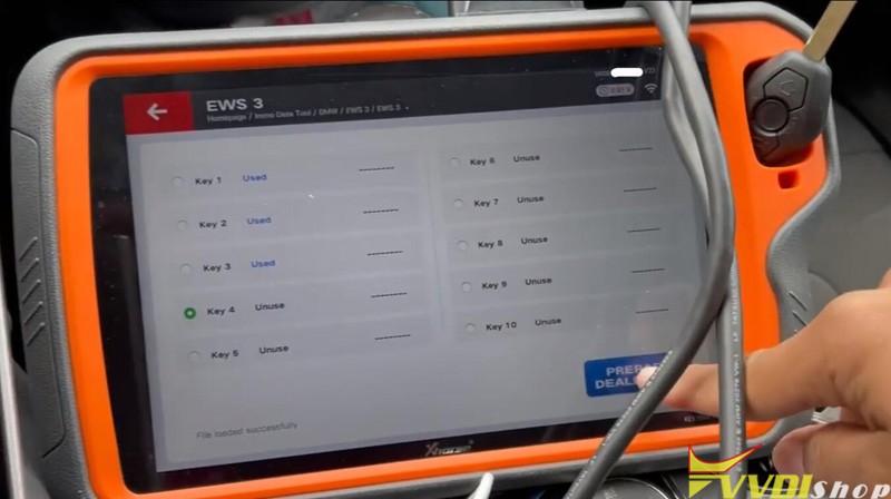 Generate dealer key – load immo data >> Select data file, open >> Continue >> Prepare normal dealer key >> Yes