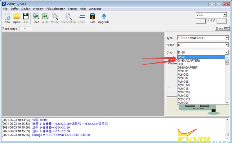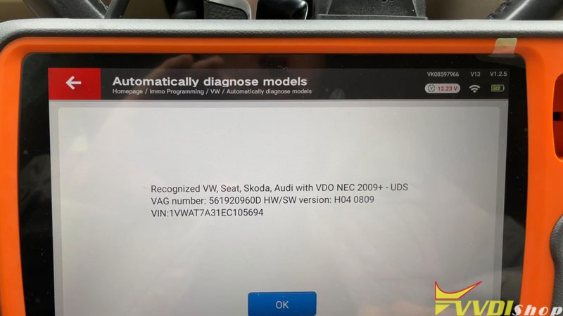 Immo programming >> Europe >> VW >> Automatically diagnose models >> Start programming >> OK >> Read EEPROM