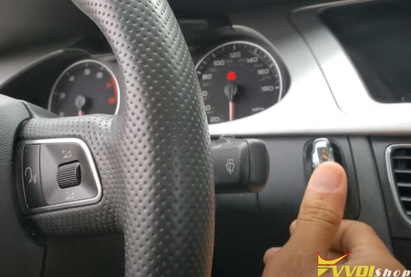 Insert dealer key into the ignition, open headlight and step on the brake to wake up instrument before continue