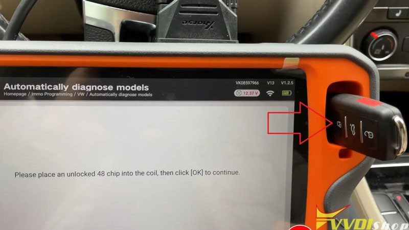Please place an unlocked 48 chip into the VVDI Key Tool Plus coil, press “OK”.
