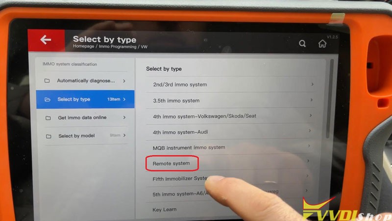 Select by type >> Remote system >> 09 central control system (CAN) – BCM >> Start programming >> Program remote