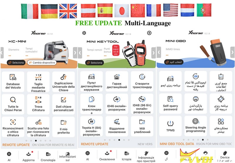 Good news! Some Xhorse tools support free update multi-language. That means no more need to get the language authority from dealer. It is free with the last update.
