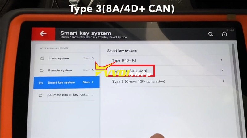 Immo programming >> Asia >> Toyota >> Select by type >> Smart key system >> Type 3(8A/4D+ CAN) >> Start programming >> Read the number of keys