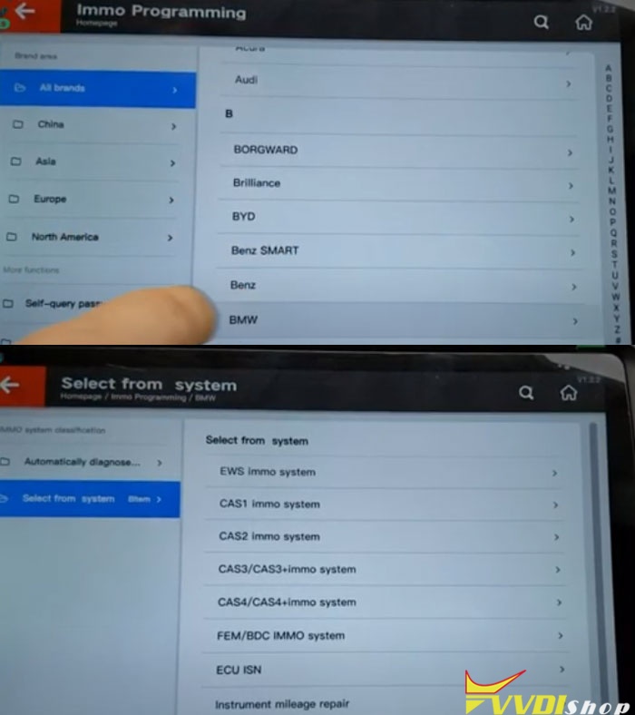Select IMMO Programming->BMW->Select from system->ECU ISN->Begin