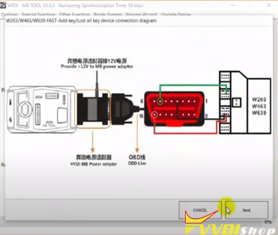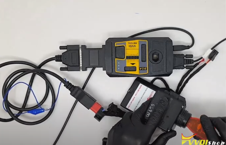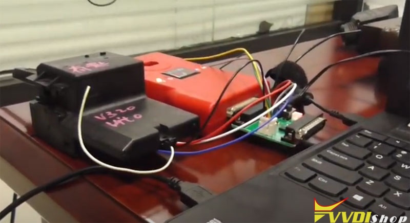 Connect VVDI MB with mb power adapter, W639 EIS, EIS test cable and IR reader as picture shown below: