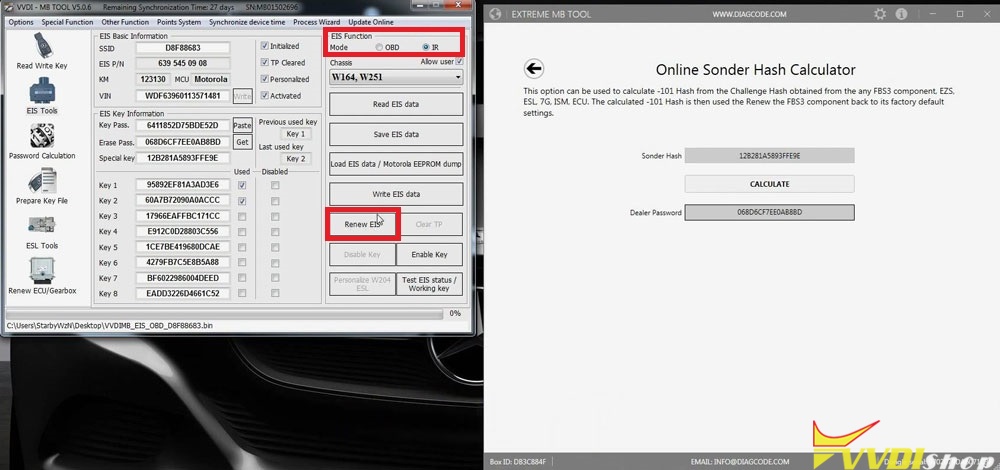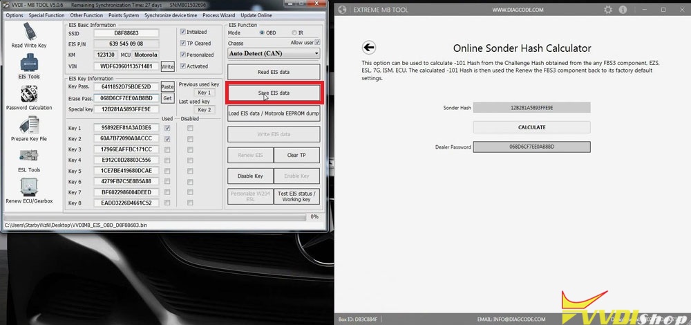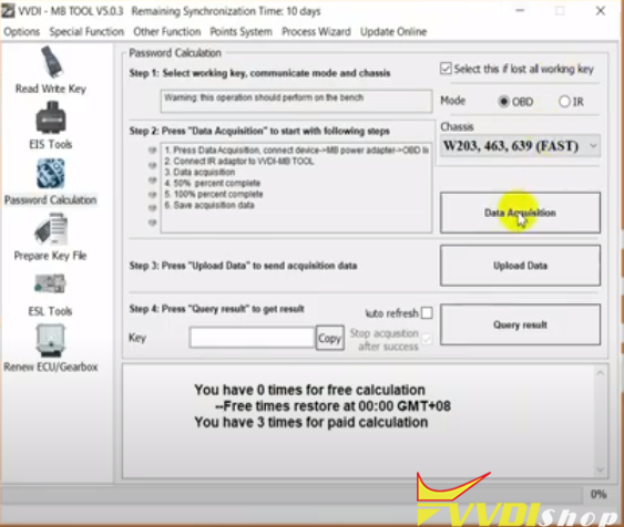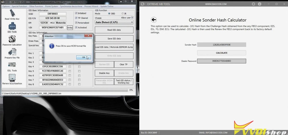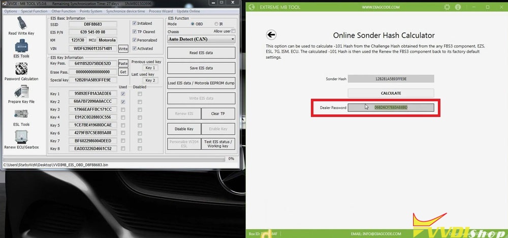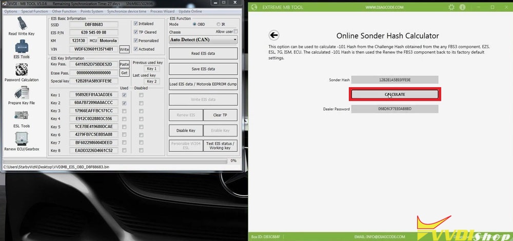For example: calculating W639 password by CGDI MB and AC adapter fast cable, reading pass in less than 9 minutes