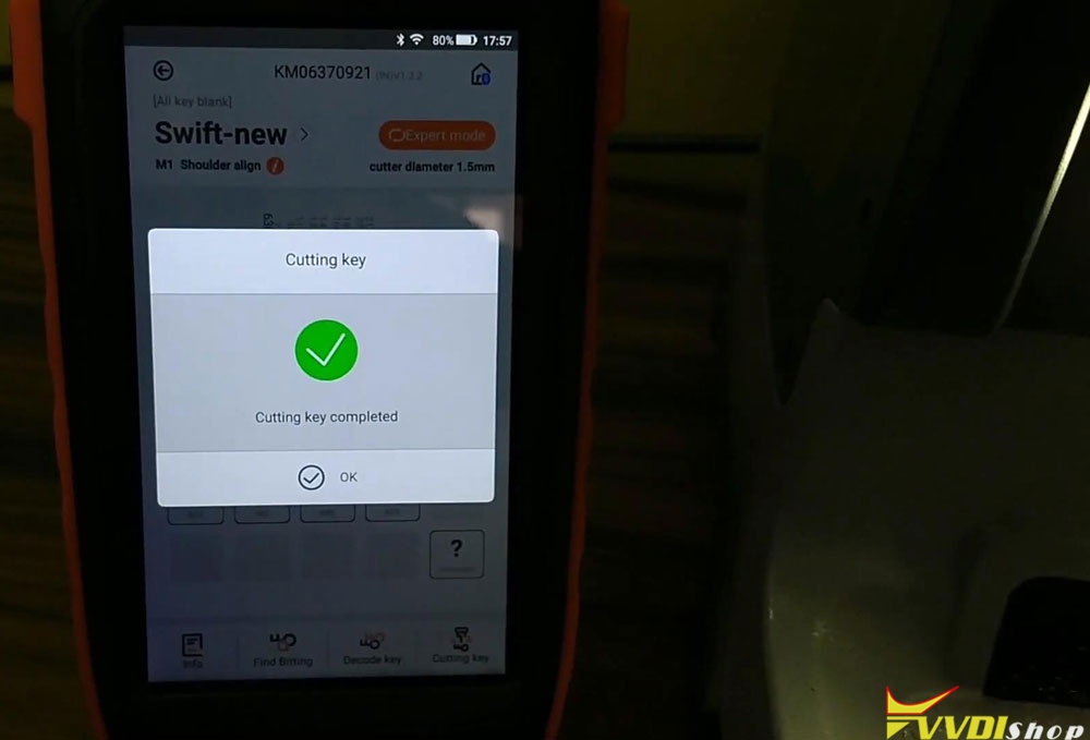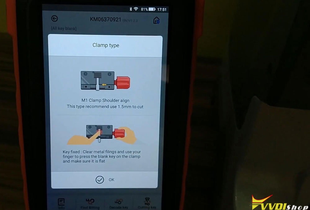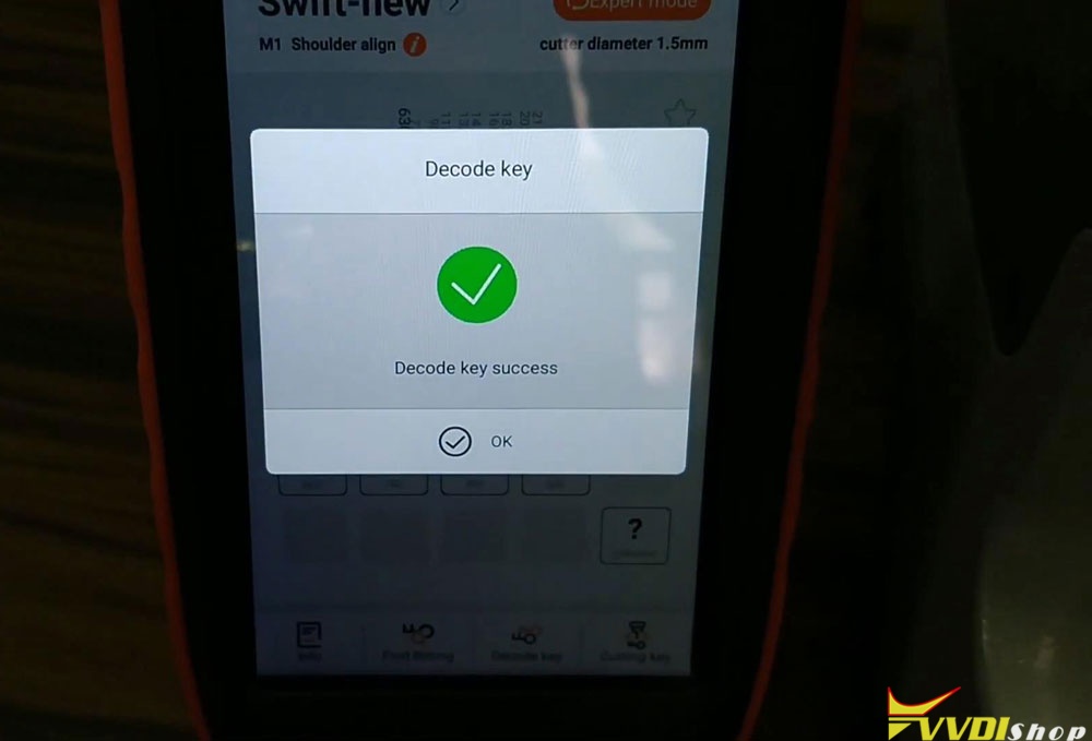 Cutting key completed, press “OK”.