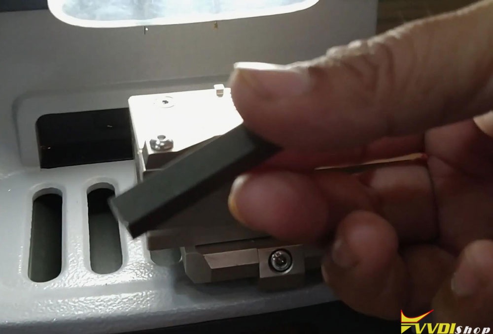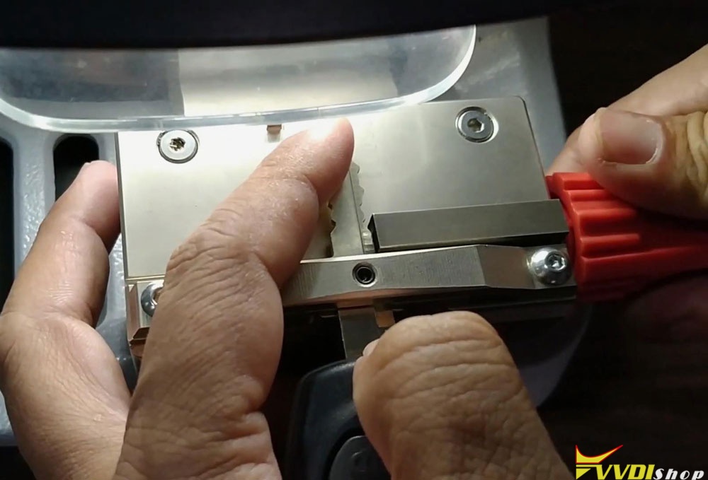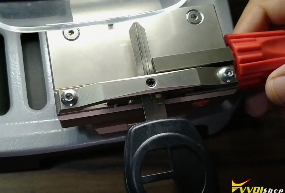 Dismount the original key, put the new key to be cut on clamp instead. Calibrate and fix the key as before.