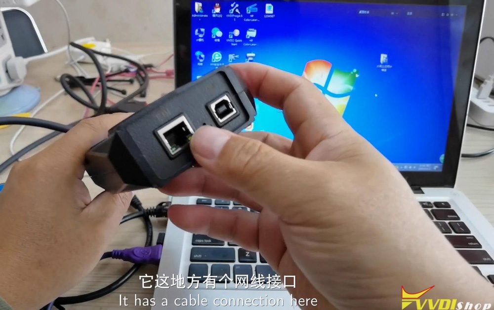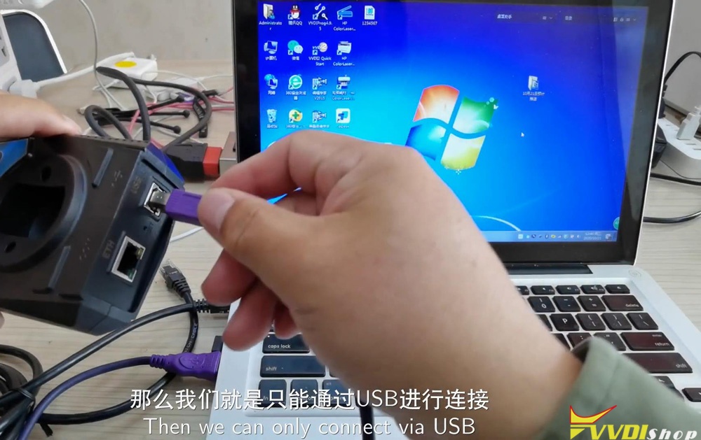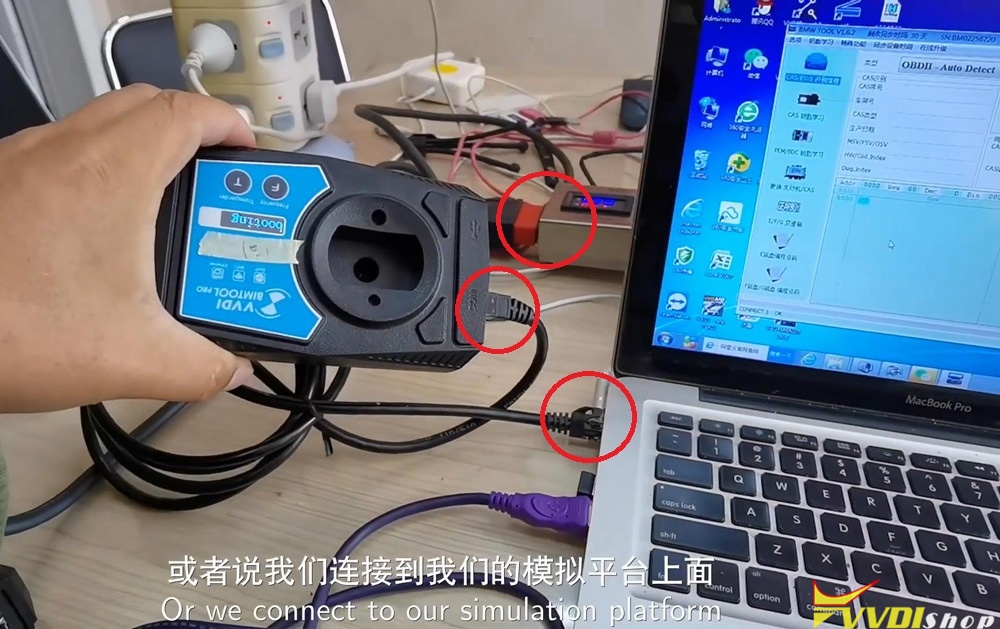 As you can see, there are 2 connections ports on VVDI BIM tool, the left bigger one is DOIP port, the right one is USB port. How do we connect it?