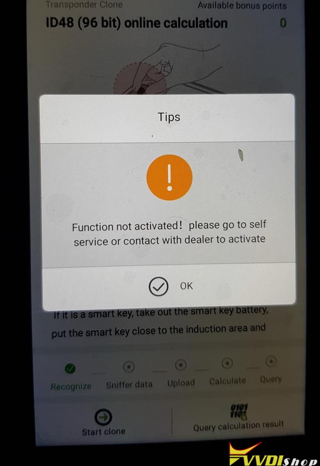 “Function not activated! Please go to self service or contact with dealer to activate ”