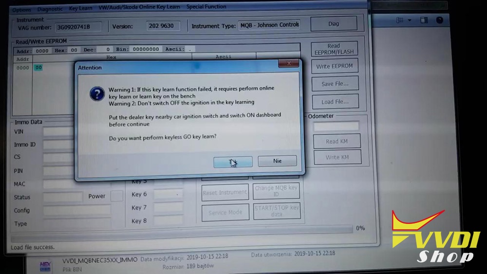 Use bitting, and write into new style HU64-3: Result Success