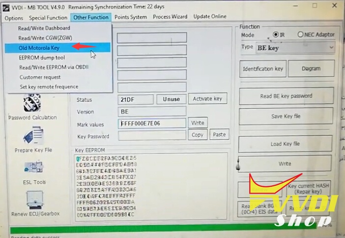 Open VVDI MB software, select Other Function-> Old Motorola Key