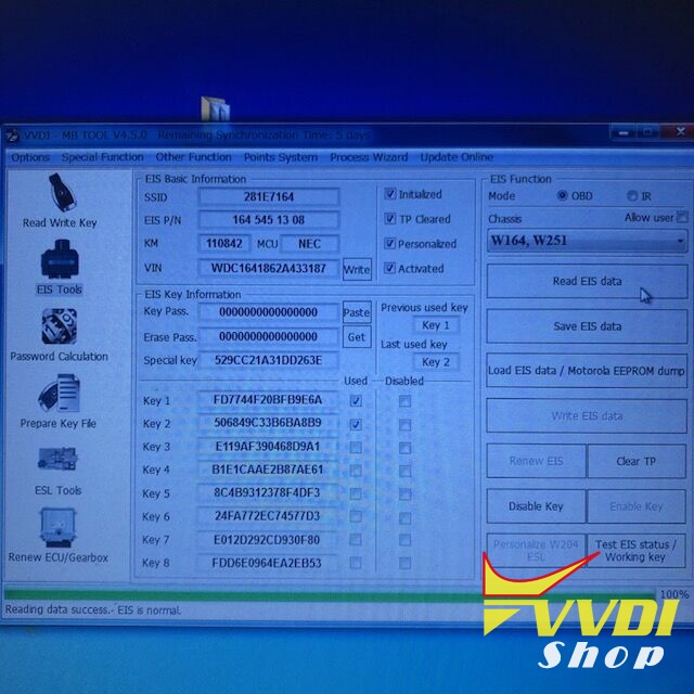and you have pin and cs.turn off ignition and write back orginal eeprom from obd