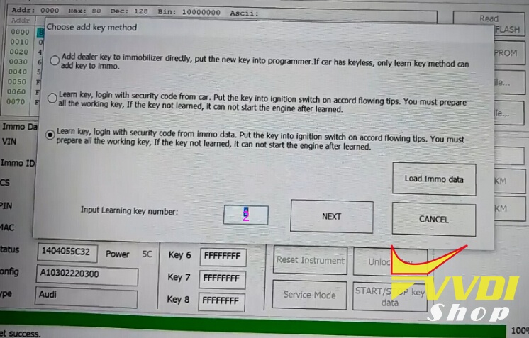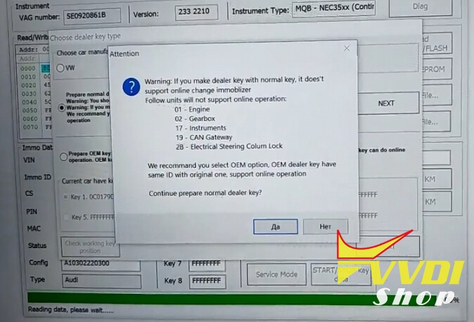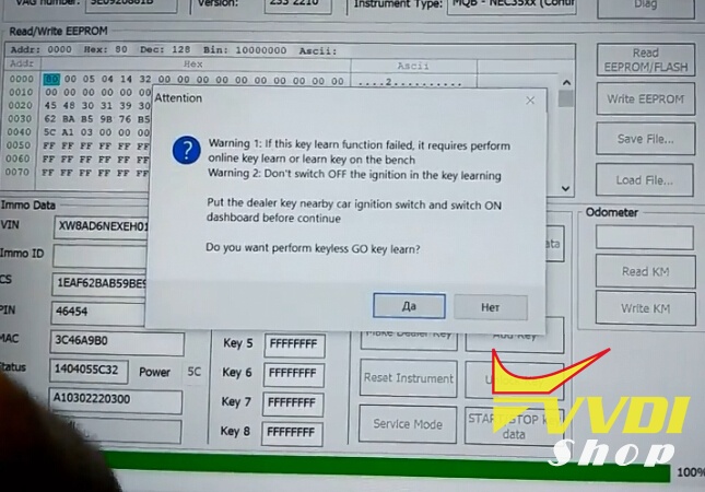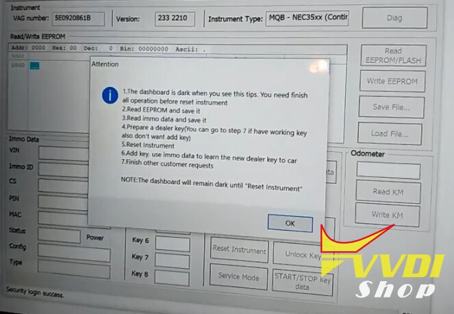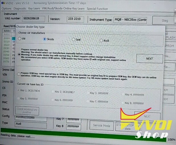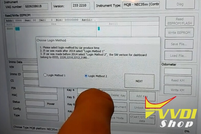 Select Key Learn->MQB platform instrument immobilizer->Instrument with NEC35xx (Continental/VDO)