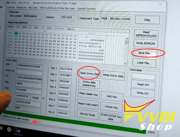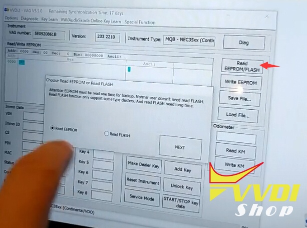 Select Key Learn->MQB platform instrument immobilizer->Instrument with NEC35xx (Continental/VDO)