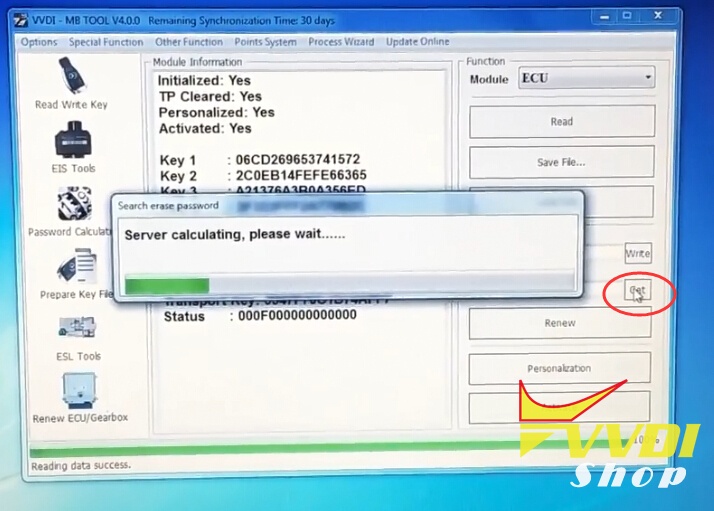 Put VVDI Key Tool antenna close to ignition switch or coil detention area