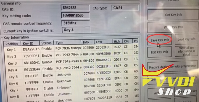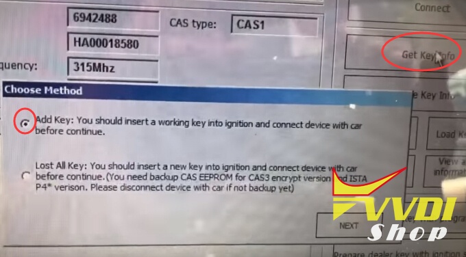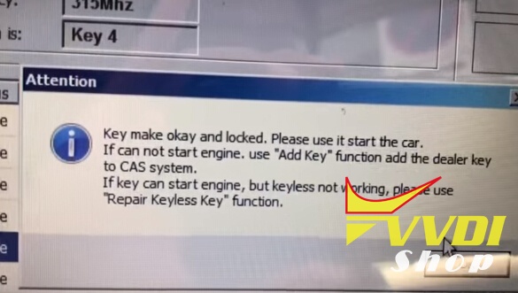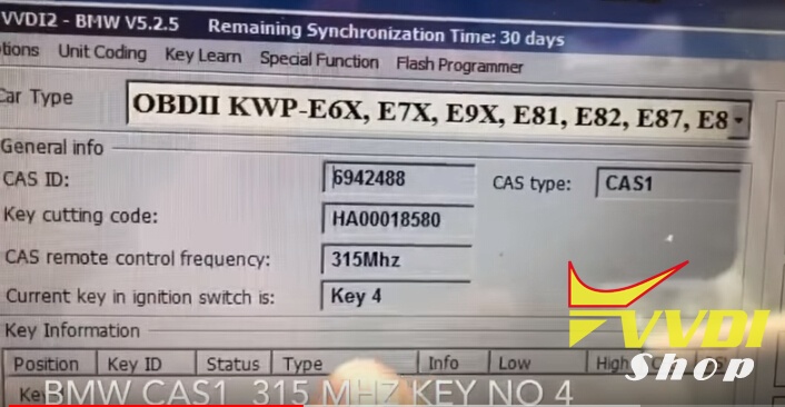 VVDI2 identified vehicle information: BMW CAS1 315MHz key No 4